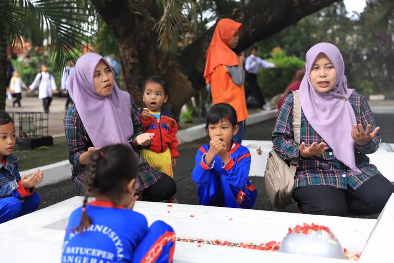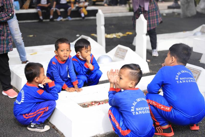 Sementara itu, Santi, Kepala RA Al Irnusoyah, Kecamatan Batuceper di momen Hari Pahlawan tahun ini membawa 20 anak muridnya, ke TMP Taruna untuk mempelajari sejarah pahlawan Tangerang.