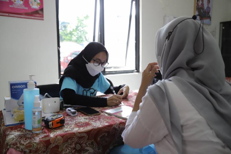 Ketua TP PKK Kota Tangerang, Aini Suci Wismansyah, didampingi perwakilan dari TP PKK Provinsi Banten Nurul Aini menyampaikan kegiatan ini berkolaborasi dengan Fakultas Kedokteran Universitas Indonesia dalam melakukan pemeriksaan kesehatan pada balita dan ibu hamil.