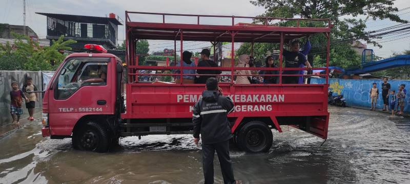 Hujan deras yang mengguyur wilayah Tangerang Raya menyebabkan banjir di sejumlah titik termasuk termasuk di RW 16 Kelurahan Uwung Jaya dan RW 06 Kelurahan Jatake Kota Tangerang, Minggu (13/11).