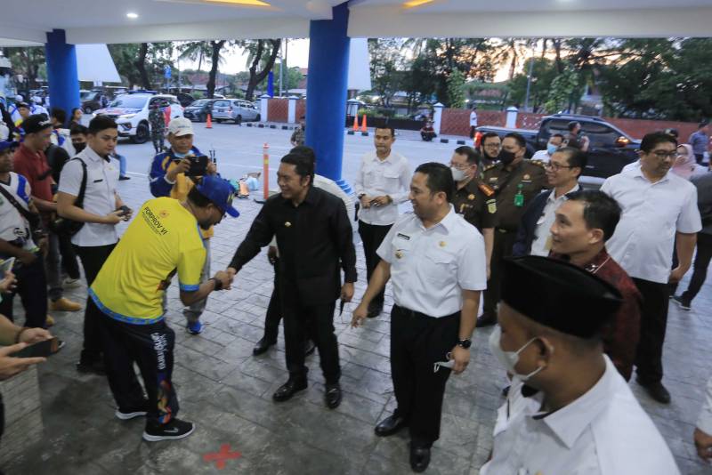Wali Kota Tangerang H. Arief R. Wismansyah menerima kunjungan Penjabat (Pj) Gubernur Banten Al Muktabar di Stadion Benteng Reborn, Rabu (16/11) yang menjadi lokasi digelarnya acara pembukaan Porprov VI Banten pada tanggal 20 November 2022 mendatang.