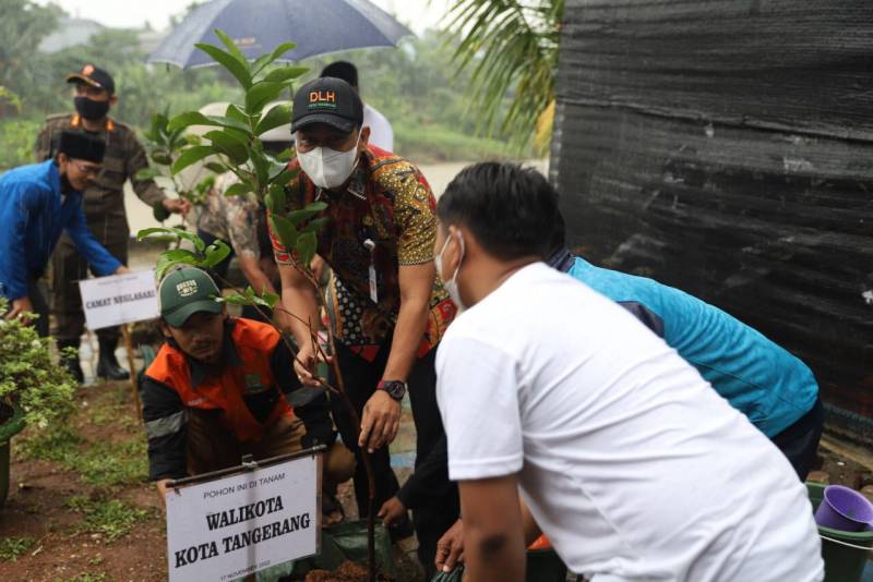 Dalam rangka memperingati Hari dan Bulan Menanam Pohon, Komite Nasional Pemuda Indonesia (KNPI) bersama Bank Sasuci Foundation menggelar kegiatan tanam pohon di pinggiran Sungai Cisadane, RW 05, Kelurahan Mekarsari, Kecamatan Neglasari, Kota Tangerang, Kamis (17/11/2022).