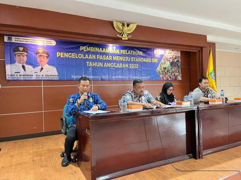 Pemerintah Kota (Pemkot) Tangerang melalui Dinas Perindustrian, Perdagangan, Koperasi, Usaha Kecil dan Menengah (Disperindagkop UKM) menggelar pembinaan pengelolaan pasar rakyat sesuai standar SNI. Diikuti 40 pengelola pasar se-Kota Tangerang yang berlangsung di Gedung Cisadane, Kecamatan Karawaci.