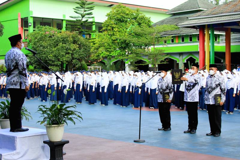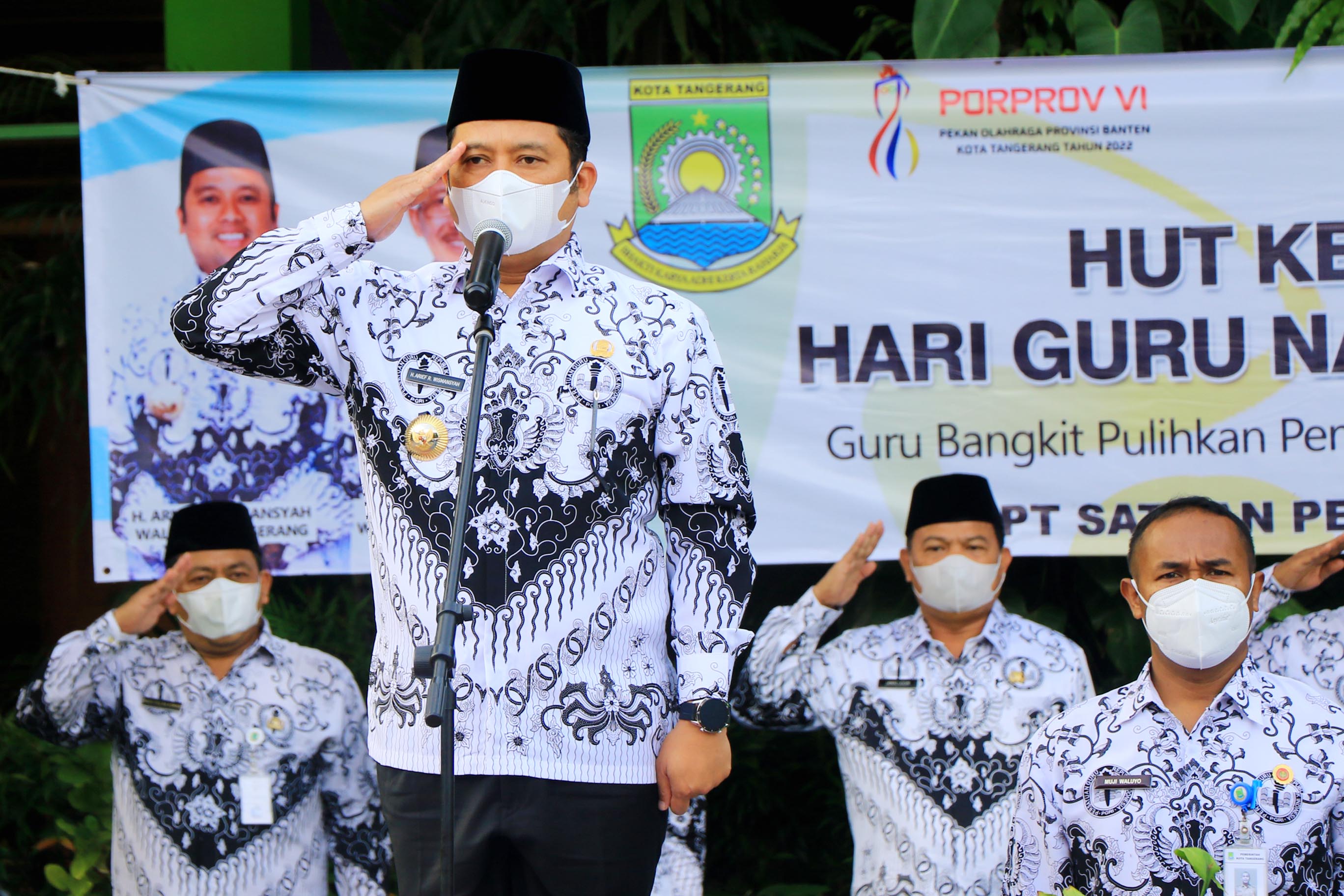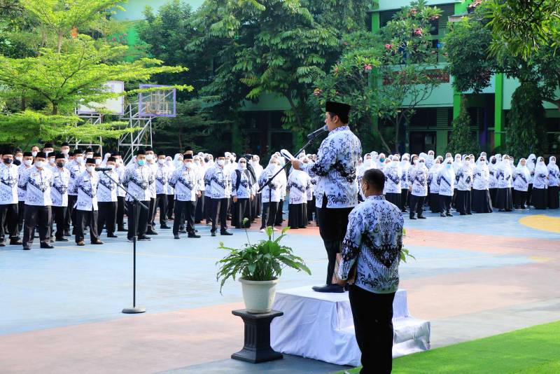 Wali Kota Tangerang H. Arief R. Wismansyah menjadi Pembina Upacara Bendera Merah Putih pada Peringatan HUT PGRI ke 77 dan Hari Guru Nasional Tahun 2022 yang bertempat di SMPN 6 Tangerang Kecamatan Karawaci, Kota Tangerang, Jumat (25/11/22).