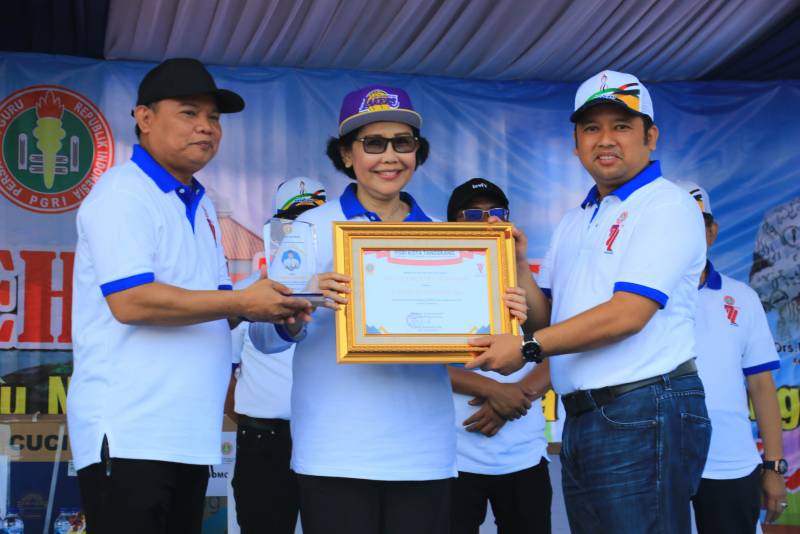 Penghargaan tersebut diberikan secara langsung oleh Ketua PB. PGRI Unifah Rosyidi kepada Wali Kota dalam acara Gerak Jalan Tematik peringatan Hari Guru Nasional dan HUT PGRI ke-77.