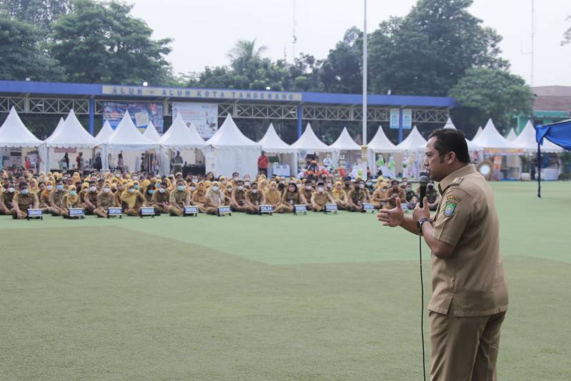 Wali Kota Tangerang H. Arief R. Wismansyah memimpin rapat yang diikuti oleh seluruh pejabat tinggi pratama dan pejabat administrator di lingkup Pemerintah Kota Tangerang.
