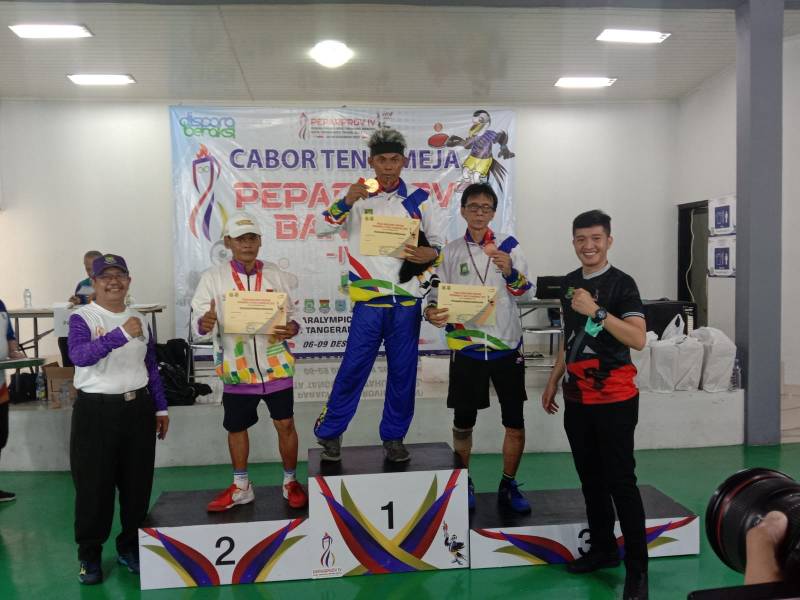 Sebagai informasi dari Agus, Panitia Pelaksana tenis meja disabilitas, hasil raihan medali kategori tuna daksa lower, juara pertama diduduki Saram asal Kota Tangerang, juara kedua dan berhak atas medali perak diraih oleh Wahyudi dari Kabupaten Tangerang. Sementara Perunggu diraih oleh Kris Sambodo dari Kota Tangerang.
