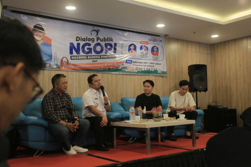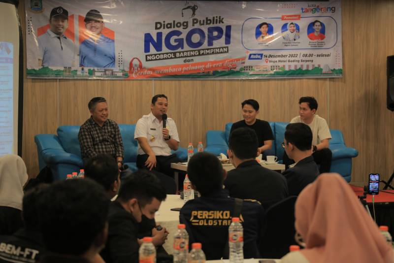 Pemerintah Kota Tangerang melalui Bagian Protokol dan Komunikasi Pimpinan Sekretariat Daerah menggelar acara Dialog Publik: Ngobrol Bareng Pimpinan (Ngopi) dengan tema Cerdas Membaca Peluang di Era Digital yang bertempat di salah satu hotel di Tangerang, Rabu (14/12/2022).
