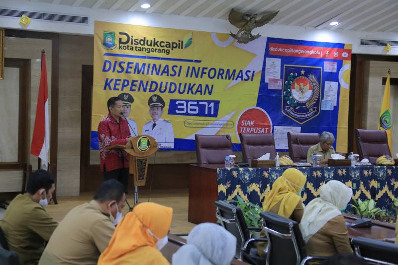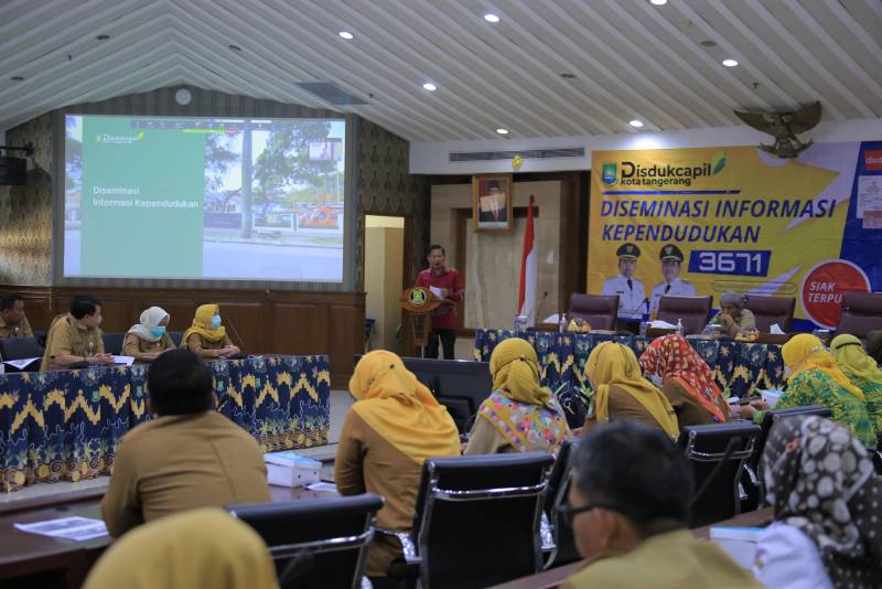 Dinas Kependudukan dan Pencatatan Sipil (Disdukcapil) Kota Tangerang kembali menggelar kegiatan Diseminasi Informasi Kependudukan Tahun 2022 yang berlangsung secara daring dan luring di Ruang Akhlakul Karimah, Pusat Pemerintahan Kota Tangerang, Selasa (20/12/22).