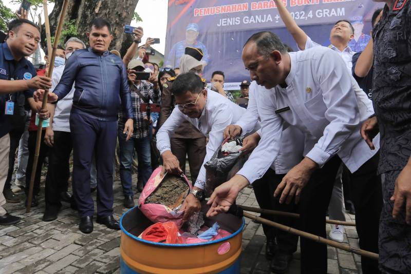 Sementara, Kombes Pol. Ichlas Gunawan Kepala BNN Kota Tangerang menjelaskan bahwa pemusnahan ganja seberat 8 kilogram berasal dari Medan yang dikirim melalui jasa pengiriman yang berada di Kota Tangerang.