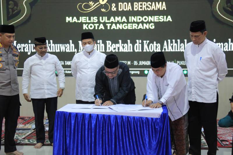 Selain doa bersama, dalam acara tersebut dilakukan juga penandatanganan perjanjian kerjasama antara MUI Kota Tangerang dengan Universitas Yatsi Madani dalam penyediaan pendidikan bagi pengurus Lembaga Pendidikan dan Pelatihan Kader Ulama (LP2KU) MUI Kota Tangerang.
