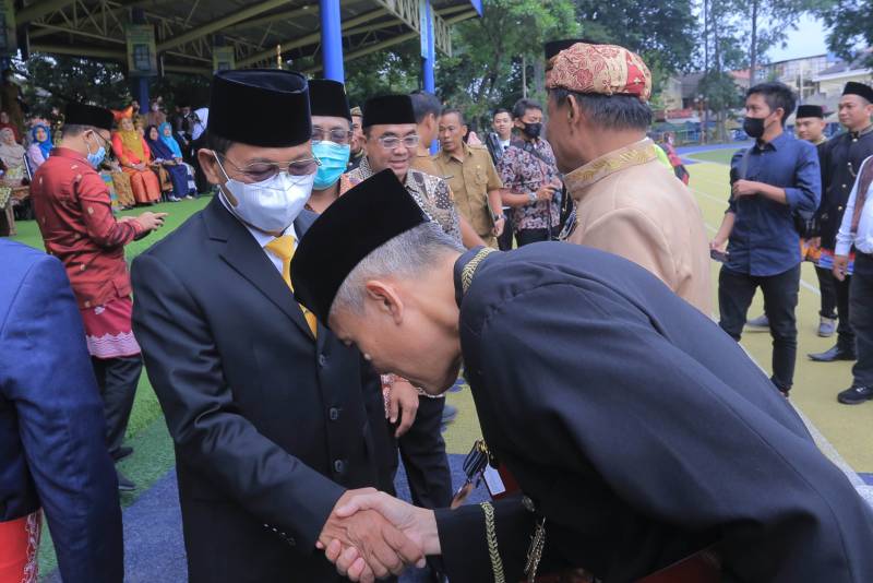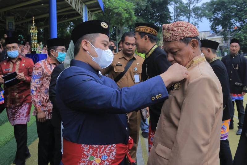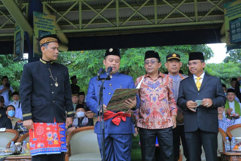 Wali Kota Tangerang H. Arief R Wismansyah didampingi Wakilnya H. Sachrudin menyerahkan Berita Acara Hibah Tanah dari Pemkot Tangerang kepada Kemenag Kota Tangerang yang diwakili Kepala Kantor Kemenag Kota Tangerang, H. Samsudin, Selasa (03/01/2023).