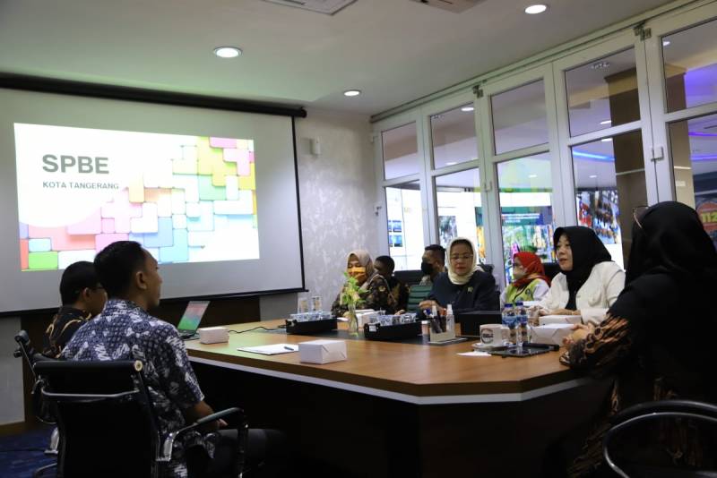 Pemerintah Kota (Pemkot) Tangerang melalui Dinas Komunikasi dan Informatika (Kominfo) menerima studi implementasi Sistem Pemerintahan Berbasis Elektronik (SPBE) dari Komisi I DPRD Kota Sukabumi, di Tangerang Live Room, Kamis (12/1/2023).