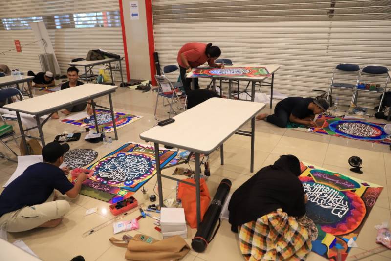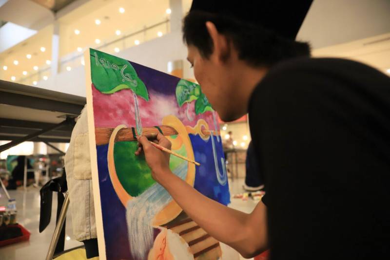 Musabaqoh Tilawatil Quran (MTQ) XXII tingkat Kota Tangerang, memasuki hari kedua, Senin (16/1/23). Salah satunya, yang masih berlangsung ialah cabang Kaligrafi yang melombakan empat kategori, diantaranya naskah, hiasan mushaf, dekorasi dan kontemporer, di Icon Walk, Cimone, Karawaci, Kota Tangerang.