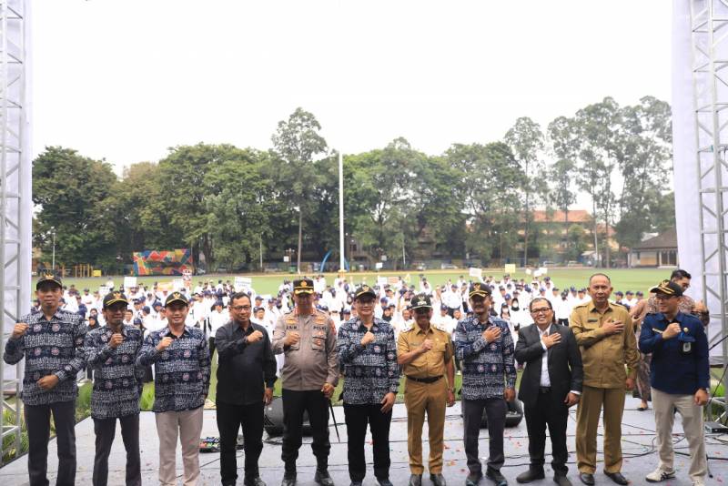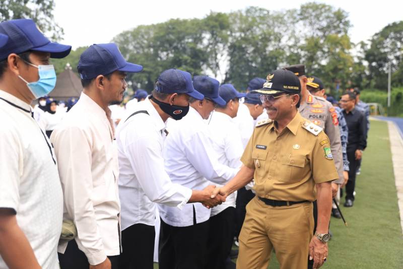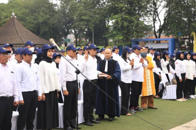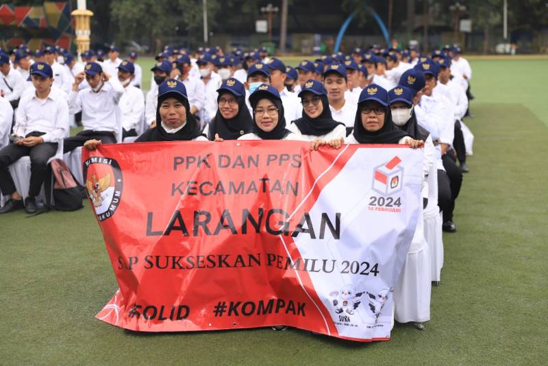 Menjelang Pemilihan Umum (Pemilu) Serentak tahun 2024, Komisi Pemilihan Umum (KPU) Kota Tangerang melaksanakan pelantikan dan pengucapan sumpah janji Panitia Pemungutan Suara (PPS) serta apel serentak Panitia Pemilihan Kecamatan (PPK) se-Kota Tangerang, di Alun-alun Ahmad Yani, Kota Tangerang, pada Selasa (24/1/23).
