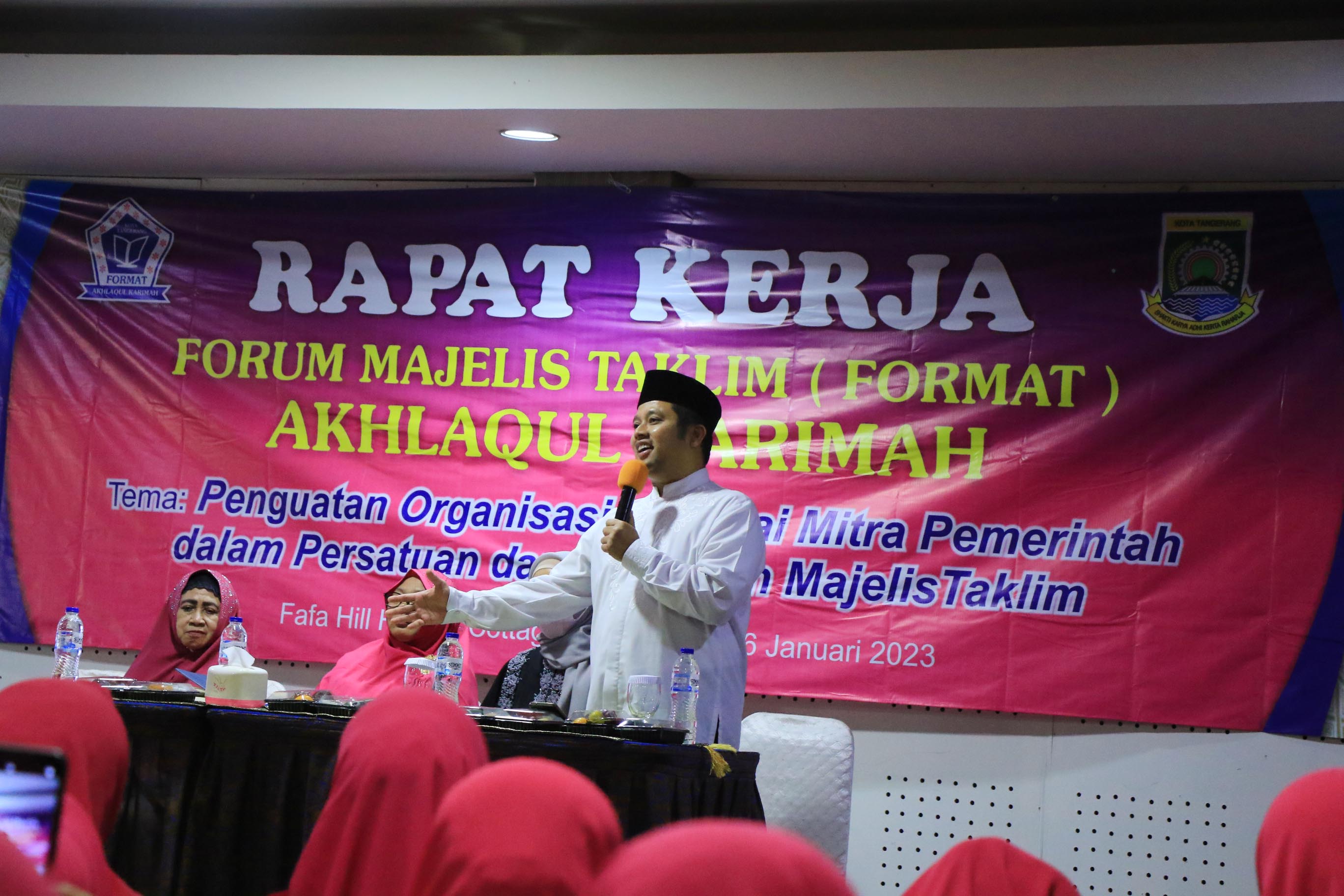 Wali Kota Tangerang H. Arief R. Wismansyah membuka Rapat Kerja Forum Majelis Taklim (Format) Akhlaqul Karimah dengan tema "Penguatan Organisasi Sebagai Mitra Pemerintah Dalam Persatuan dan Kesatuan Majelis Taklim" di Fafa Hotel & Resort, Kabupaten Bogor, Rabu (25/1).