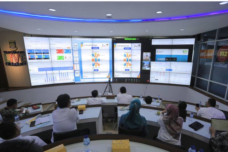 Wali Kota Tangerang H. Arief R. Wismansyah memaparkan program - program yang dilakukan oleh Pemkot Tangerang dalam penanganan stunting dan kemiskinan ekstrem di hadapan Menteri Koordinator Bidang Pembangunan Manusia dan Kebudayaan Republik Indonesia.