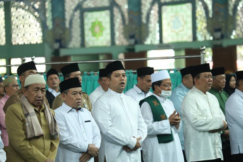 Dalam rangka memperingati Isra Miraj, terlebih menjelang HUT Ke-30 Kota Tangerang, Pemerintah Kota (Pemkot) Tangerang menggelar pengajian bersama, di Masjid Raya Al Azhom, Kota Tangerang, Selasa (7/2/23).