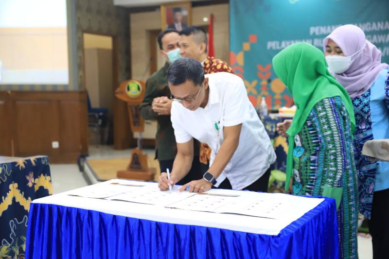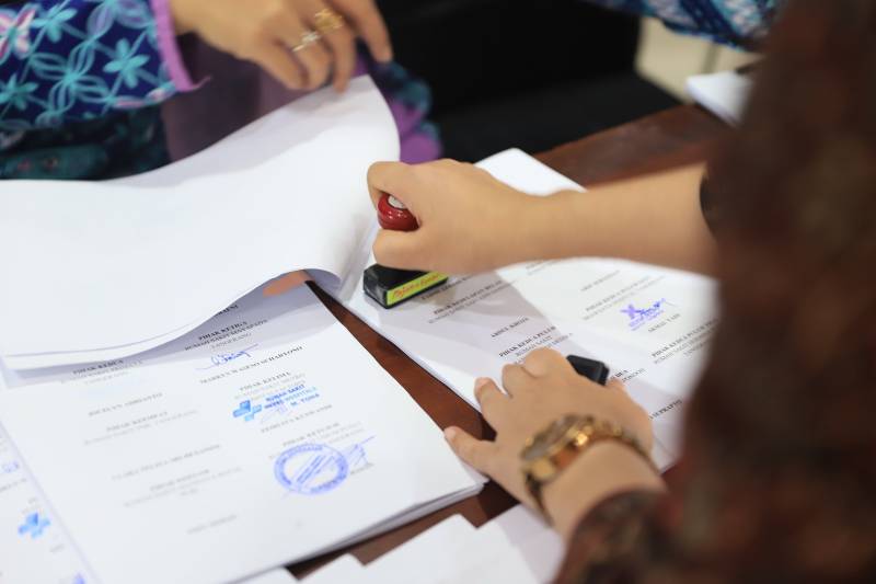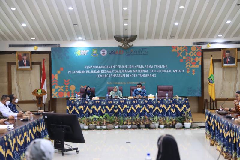 Pemerintah Kota (Pemkot) Tangerang melalui Dinas Kesehatan (Dinkes) bersama seluruh Rumah Sakit (RS) dan lembaga kesehatan di Kota Tangerang, melakukan Penandatanganan Perjanjian Kerjasama (PKS) tentang Pelayanan Rujukan Kegawatdaruratan Maternal dan Neonatal, yang masuk dalam program MOMENTUM Private Healthcare Delivery (MPHD), di Ruang Akhlakul Karimah, Puspem Kota Tangerang, Kamis (9/2/23).