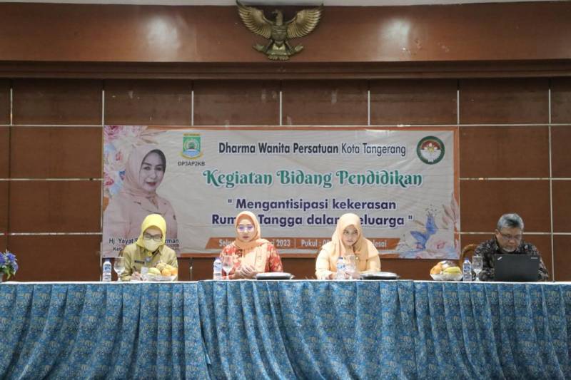 Dharma Wanita Persatuan (DWP) Kota Tangerang menggelar kegiatan bidang pendidikan membahas mengenai antisipasi kekerasan rumah tangga dalam keluarga, secara hybrid di Gedung Nyimas Melati, Selasa (14/2/2023).