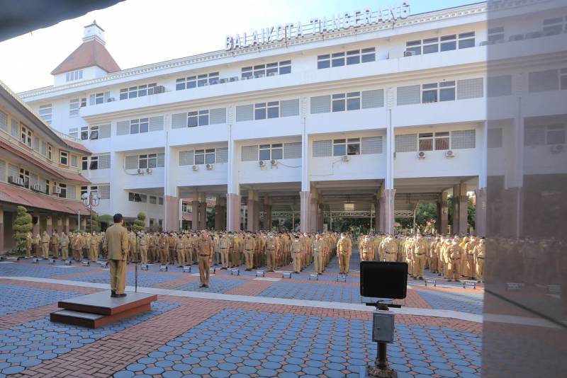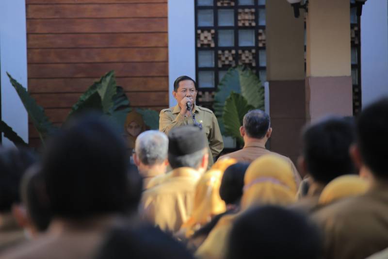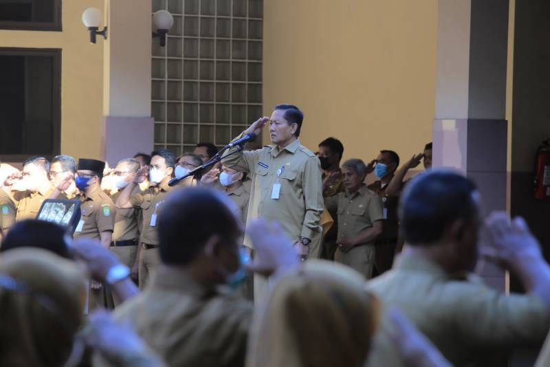 Saat memimpin apel pagi, Senin (20/02) di Pusat Pemerintahan Kota Tangerang, Sekretaris Daerah (Sekda), Herman Suwarman, mengajak para pegawai untuk selalu menjaga kesehatan dan berpartisipasi aktif pada rangkaian kegiatan jelang Hari Ulang Tahun (HUT) ke-30 Kota Tangerang.