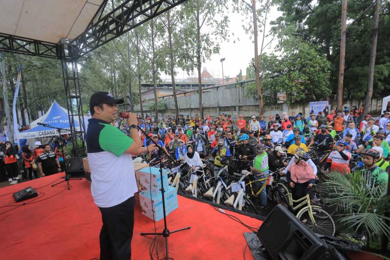 "Sekalian nyari sehat, sekalian jalan - jalan keliling Kota Tangerang," ujar wali kota dalam acara yang mengambil titik start di area Pusat Pemerintahan Kota Tangerang, Sabtu (25/2).