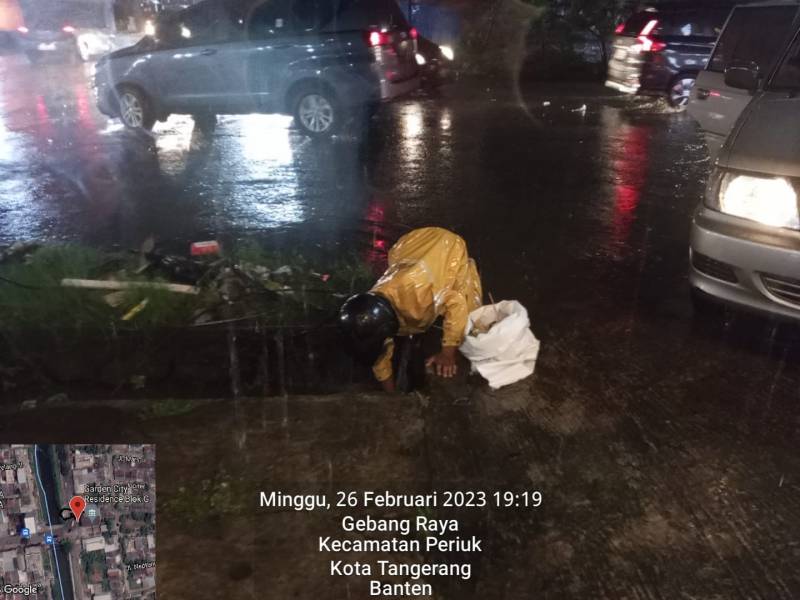 Wilayah Kota Tangerang dan sekitar sejak Minggu (26/2) malam diguyur hujan dengan intensitas tinggi hingga Senin (27/2) pagi. Hal ini mengakibatkan sejumlah wilayah di Kota Tangerang terjadi genangan, dan antrian aliran air yang cukup tersendat.