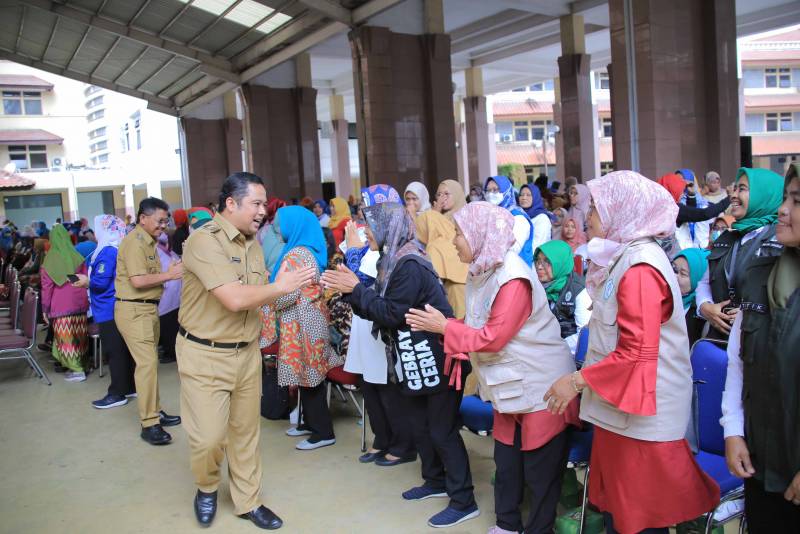 Ratusan kader bergembira bersama Wali Kota Arief R. Wismansyah dalam Festival Kader yang dilaksanakan dalam rangka HUT Kota Tangerang ke 30 di Plaza Pusat Pemerintahan Kota Tangerang, Senin (27/02). Para kader terlihat bersuka cita dan mengajak para undangan yang hadir melakukan flashmob bareng sambil diiringi lagu “Berencana Itu Keren”.