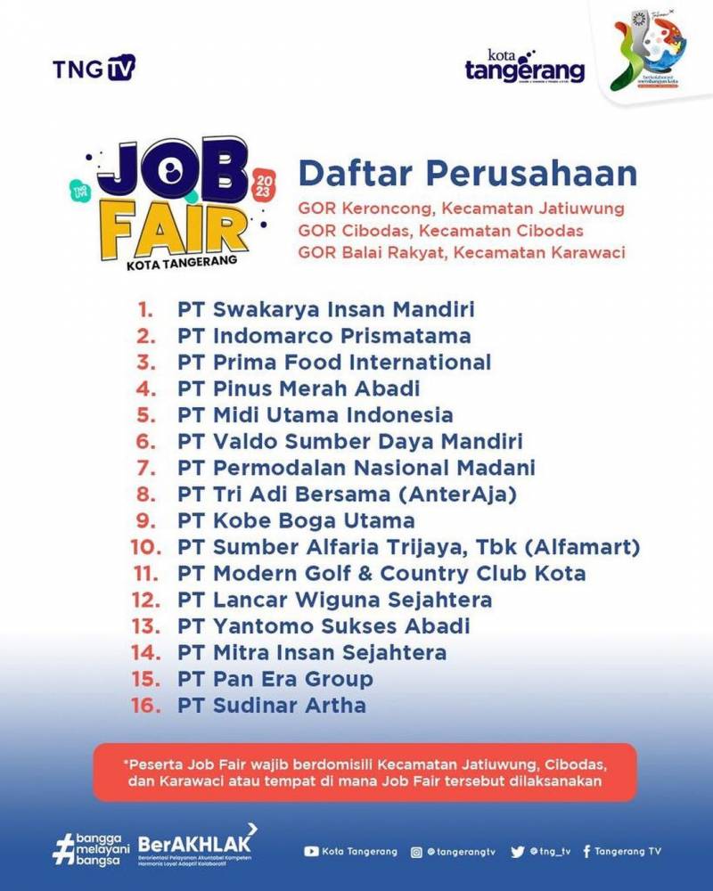 Catat tempat dan tanggalnya ya, ada lebih dari 15 perusahaan yang bisa kamu kepoin, lho! Pastikan sudah download aplikasi Tangerang LIVE dan kamu sudah bisa datang langsung.