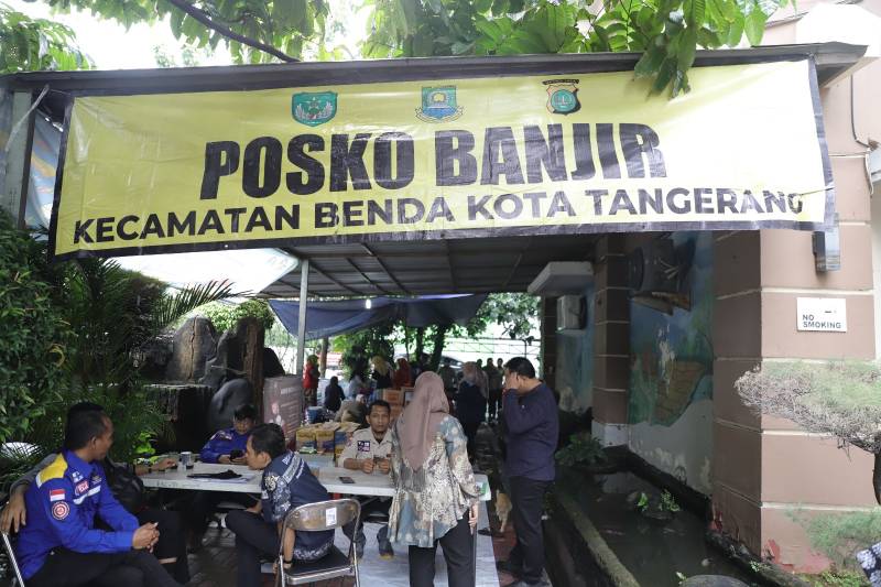 Sempat diguyur hujan dan adanya genangan di beberapa titik, Kecamatan Benda dirikan dan siagakan dapur umum di halaman Kantor Kecamatan Benda. Kader PKK Kecamatan Benda hingga pihak Polsek dan Bhayangkari turut hadir membantu mempersiapkan bantuan permakanan.
