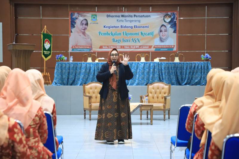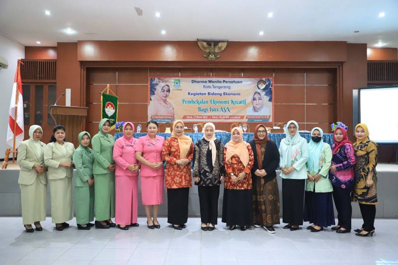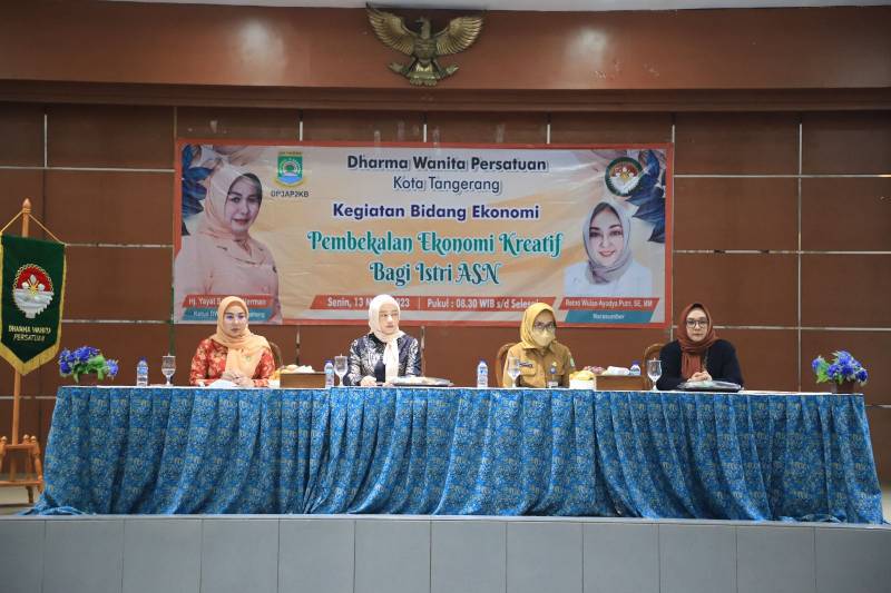 Meningkatkan kreatifitas para istri Aparatur Sipil Negara (ASN) dan mewujudkan perempuan yang berdaya, Dharma Wanita Persatuan (DWP) Kota Tangerang menggelar seminar “Pembekalan Ekonomi Kreatif Bagi Istri ASN”. Acara dilaksanakan di Aula Gedung Nyi Mas Melati, Senin (13/03/23).