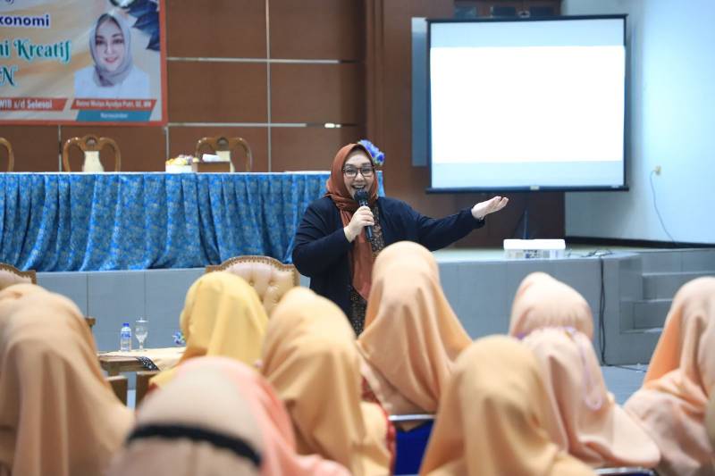 “Materi yang disampaikan hari ini adalah tentang konsep ekonomi kreatif secara umum dan bagaimana cara mengatur sistem keuangan dalam rumah tangga. Selain itu, juga bagaimana cara mendapatkan uang tambahan dengan konsep berpikir ekonomi kreatif,” jelas Retno.