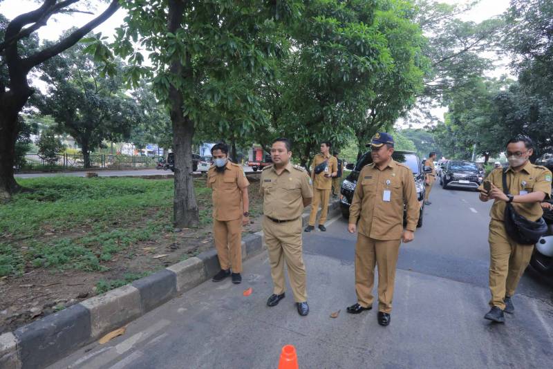 Wali Kota Tangerang. H. Arief R. Wismansyah. didampingi Kepala Dinas Pekerjaan Umum dan Penataan Ruang (PUPR), Ruta Ireng W, meninjau langsung proses perbaikan jalan rusak yang berlangsung di Jalan Benteng Betawi, Kecamatan Tangerang, Senin (13/03).