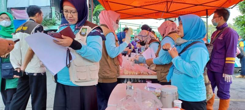 Tim Gabungan Pemerintah Kota (Pemkot) Tangerang melalui Dinas Ketahanan Pangan (DKP), Dinas Kesehatan (Dinkes), FKTS, Disperindagkop UKM bersama Polres Metro Tangerang Kota, BPOM Banten dan Balai Karantina Ikan menggelar Sidak Pengawasan Keamanan Pangan Terpadu, menjelang buln suci Ramadan, di Pasar Anyar, Kota Tangerang, Kamis (16/3/23) pagi.