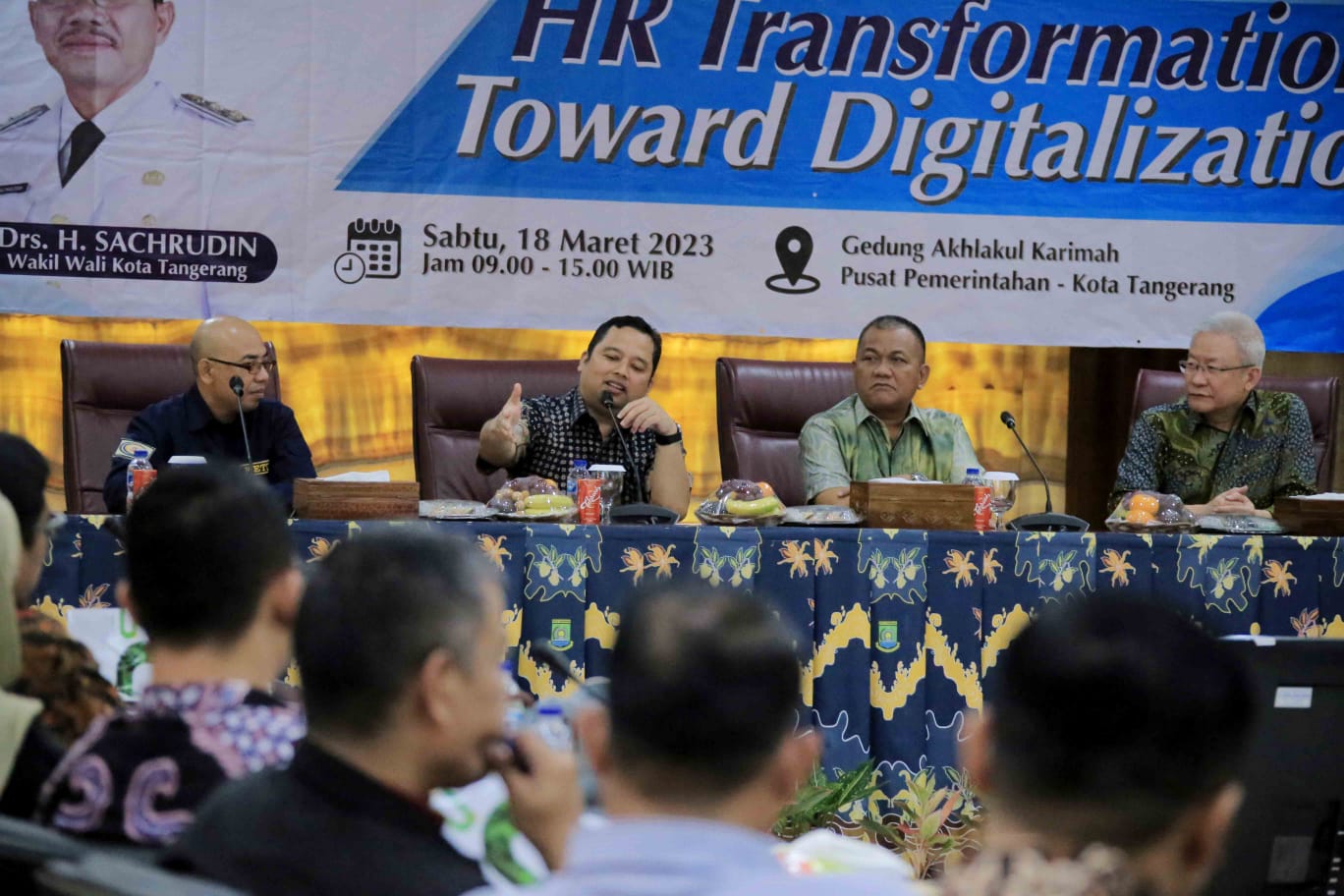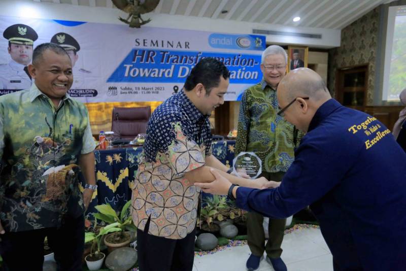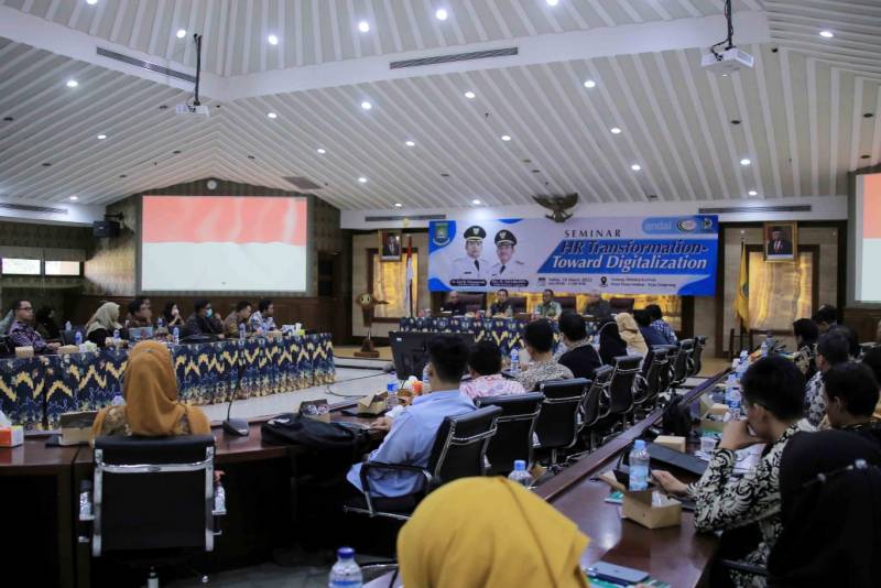 Wali Kota Tangerang, H. Arief R Wismansyah, menghadiri kegiatan seminar dengan tema HR Transformation Towards Digitalization, yang diinisiasi oleh Dinas Ketenagakerjaan (Disnaker), bertempat di Ruang Rapat Akhlakul Karimah, Pusat Pemerintahan (Puspem) Kota Tangerang, Sabtu (18/03).
