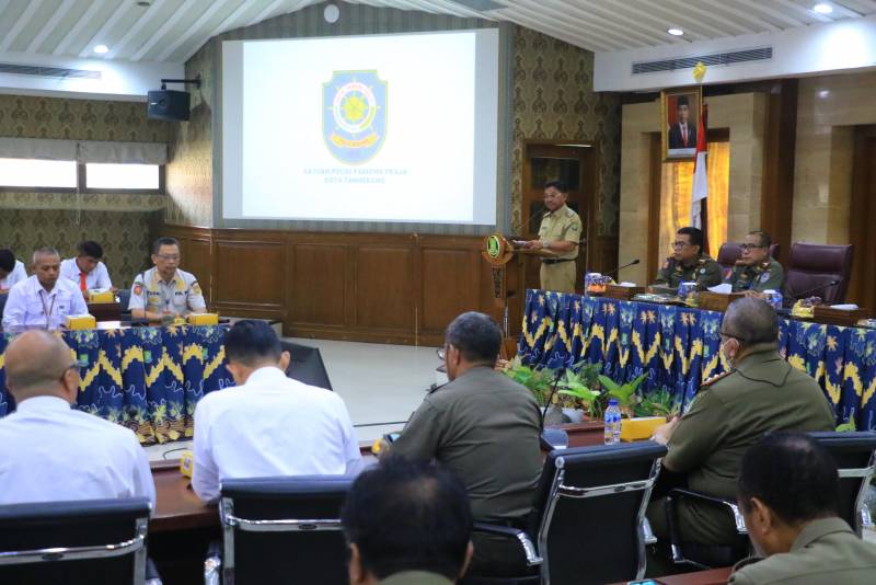 Wakil Wali Kota Tangerang, H. Sachrudin, didampingi oleh Kasatpol PP Kota Tangerang, Wawan Fauzi dan Asisten Daerah Bidang Pemerintahan Deni Koswara, menerima kedatangan rombongan peserta Wisata Karya Diklat PPNS Satpol PP Angkatan 1,2 dan 3 Tahun 2023, bertempat di Ruang Rapat Akhlakul Karimah, Kawasan Puspem Kota Tangerang, Senin (20/3).