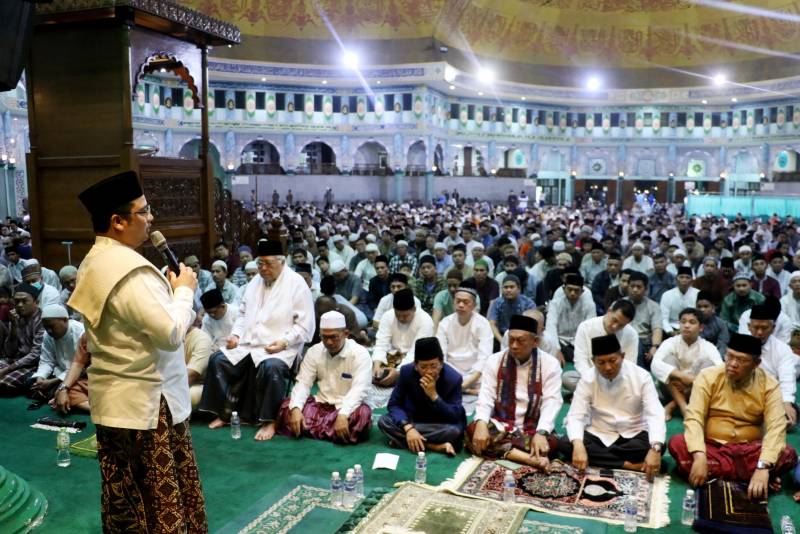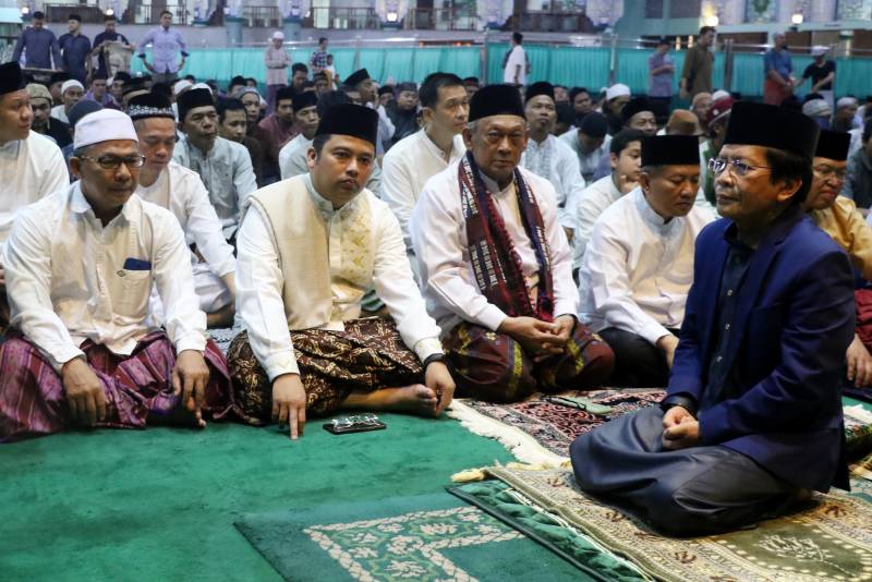 "Marhaban Ya Ramadan, sebuah kebahagiaan bagi kita semua karena bisa bertemu dan menjalankan berbagai ibadah di bulan Ramadan tahun ini," ungkap Arief di Masjid Raya Al Azhom, Rabu (22/3) malam.