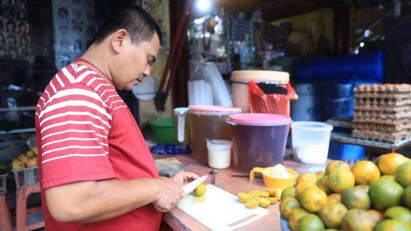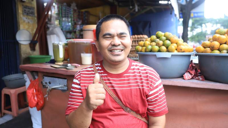 Ia mengaku, jika dalam kondisi ramai ia dapat menjual sebanyak 200 bungkus jus dalam sehari dan mendapatkan omzet sebesar 2,5 juta per-hari.