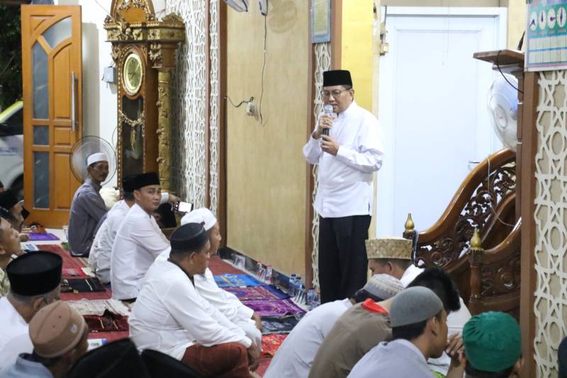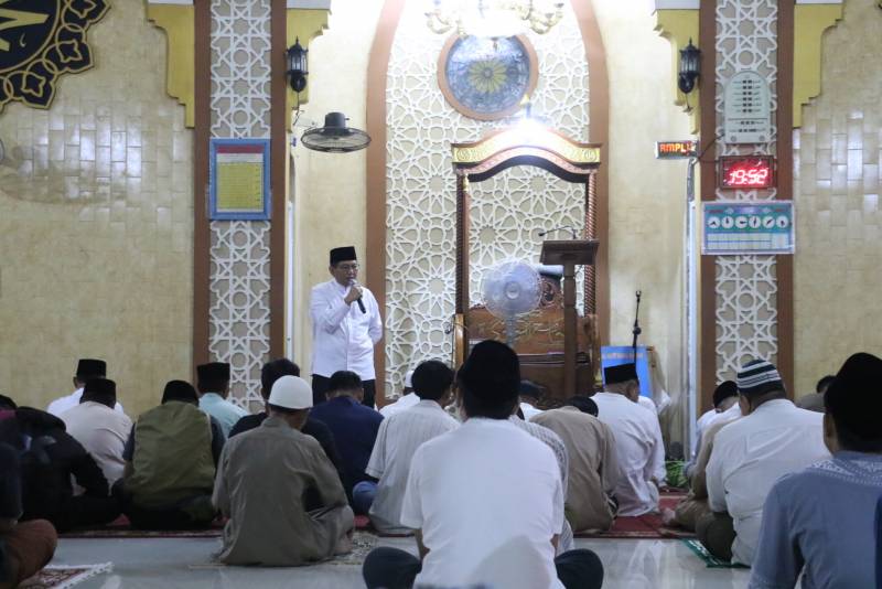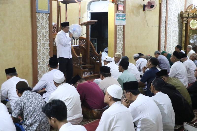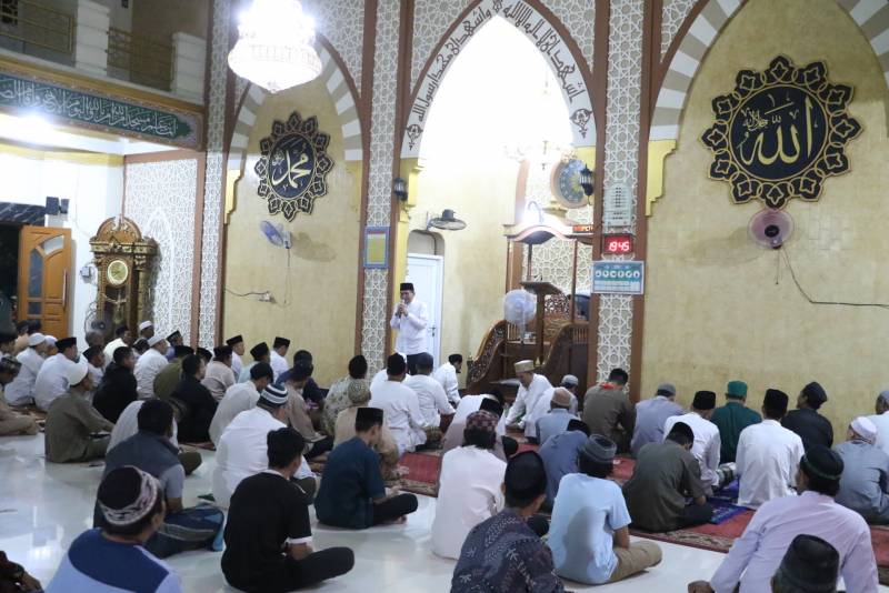 Sekretaris Daerah Kota Tangerang, Herman Suwarman, melaksanakan ibadah salat isya dan tarawih berjamaah bersama masyarakat di Masjid Jami Al-Hikmah, Kelurahan Tanah Tinggi, Kecamatan Tangerang, Senin (3/4).