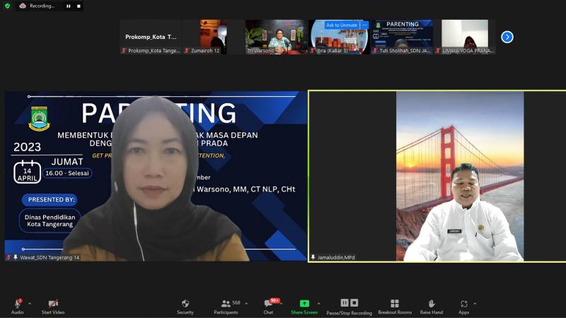 Pemerintah Kota (Pemkot) Tangerang melalui Dinas Pendidikan kembali menggelar webinar parenting yang kali ini mengusung tema Membentuk Pondasi Pribadi Anak Masa Depan Dengan Pola Komunikasi PRADA (Get Prepared, Get Rapport, Get Attention, Get Desired, Get Action) yang diikuti oleh para pengawas, kepala sekolah serta para orang tua siswa se-Kota Tangerang, Jumat (14/04/2023).