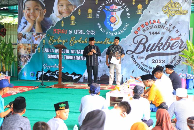 Akhir pekan di minggu terakhir Ramadan kali ini, Wakil Wali Kota Tangerang H. Sachrudin hadir bersilaturahmi dengan rekan-rekan Ikatan Alumni STMN 80 (ILUNI 80) atau yang sekarang menjadi SMKN 4 Kota Tangerang dalam acara Santunan Yatim-Dhuafa ILUNI 80 Tangerang tahun 2023, Minggu (16/4).