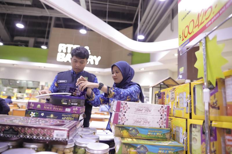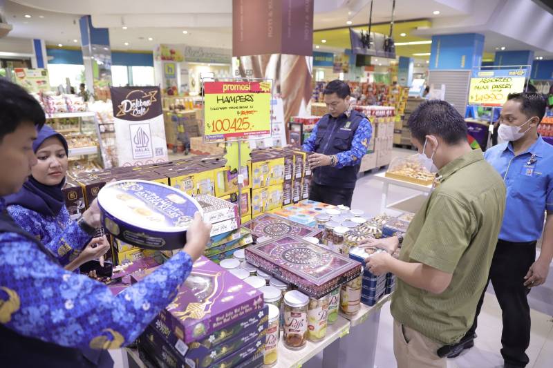 Menjelang Hari Raya Idulfitri, Dinas Perindustrian, Perdagangan, Koperasi dan UKM (Disperindagkop) Kota Tangerang melaksanakan pengawasan barang dalam keadaan terbungkus khususnya barang-barang parcel, di Hypermart Cyberpark, Kelurahan Panunggangan Barat, Kecamatan Cibodas, pada Senin (17/4/23).
