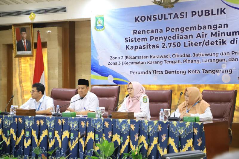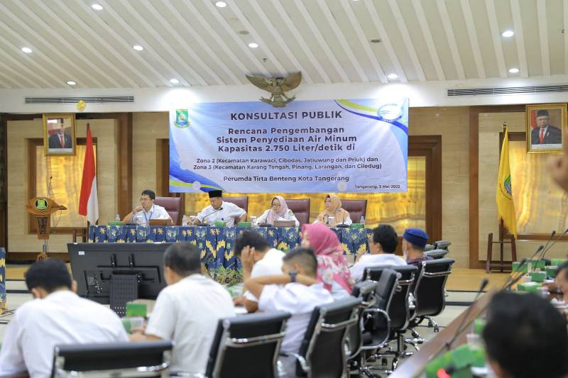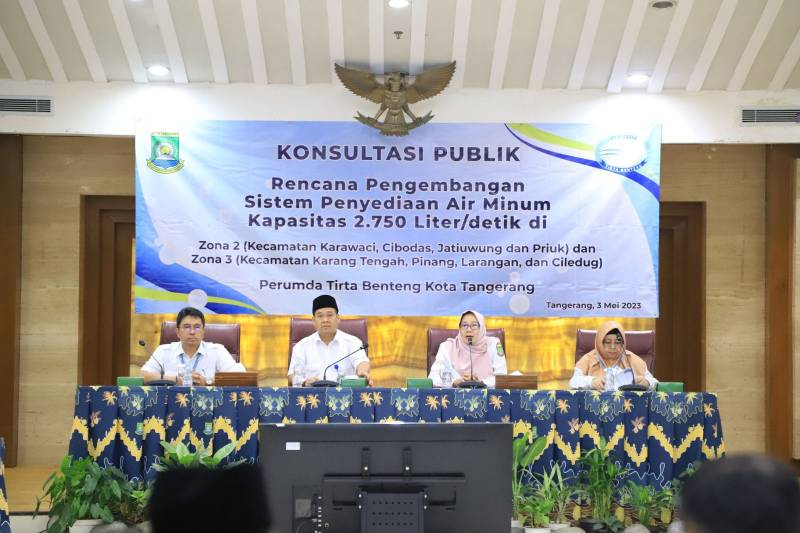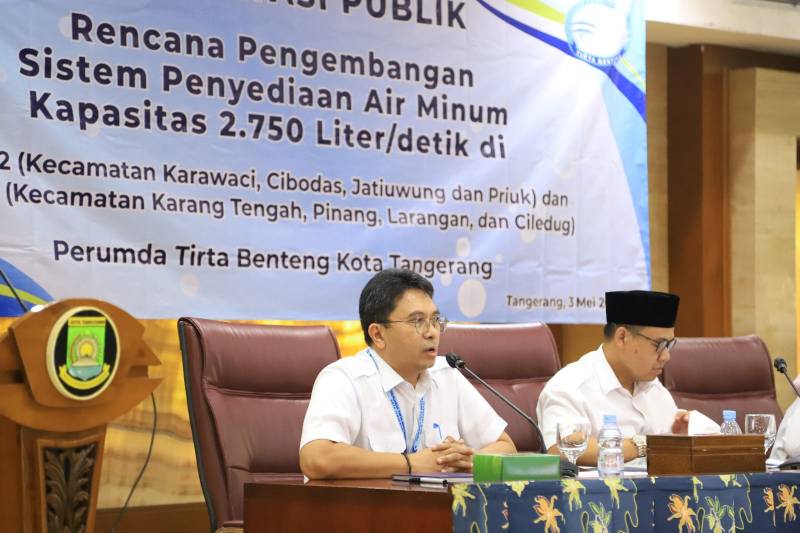 Perusahaan Umum Daerah (Perumda) Tirta Benteng baru saja menggelar forum konsultasi publik terkait rencana pengembangan Sistem Penyediaan Air Minum (SPAM) berkapasitas produksi 2.750 liter/detik. Proyek pengembangan SPAM ini akan malayani masyarakat Kota Tangerang yang berada di Zona 2 (Kecamatan Karawaci, Cibodas, Jatiuwung, dan Periuk), dan di Zona 3 (Kecamatan Karang Tengah, Pinang, Larangan, dan Ciledug). Forum yang digelar di Ruang Akhlakul Karimah, Pusat Pemerintahan (Puspem) Kota Tangerang pada siang hari ini diikuti oleh segenap lapisan masyarakat, mulai dari Camat, Lurah, sampai RT/RW di berbagai wilayah yang akan dilalui proyek pengembangan ini.