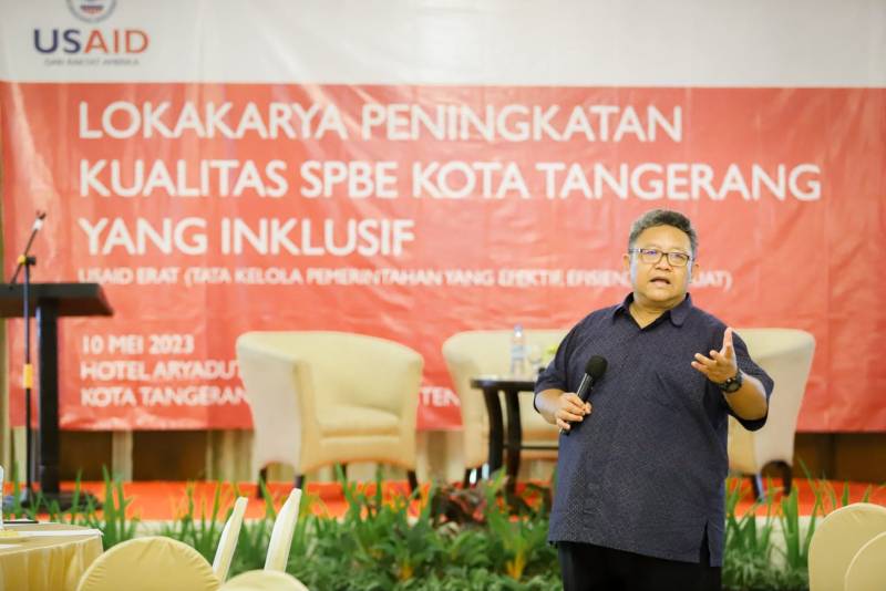 Dalam rangka meningkatkan kualitas Sistem Pemerintahan Berbasis Elektronik (SPBE) yang inklusif. Pemerintah Kota (Pemkot) Tangerang melalui Dinas Komunikasi dan Informatika (Kominfo) menggelar Lokakarya yang berkolaborasi dengan United States Agency International Development (USAID), di Hotel Aryaduta Lippo Village Kabupaten Tangerang, Rabu (10/5/2023).