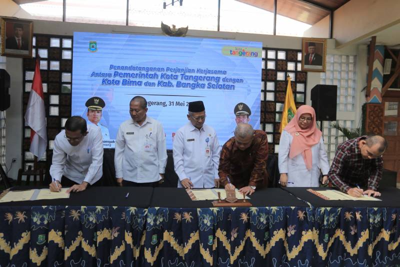 Setelah kemarin Pemerintah Kota (Pemkot) Tangerang mendapatkan empat penghargaan atas pencapaian di bidang kepegawaian dari Badan Kepegawaian Negara (BKN), hari ini, Rabu (31/05), dua daerah dari Provinsi Sumatera Utara yaitu Pemerintah Kota Bima dan Kabupaten Bangka Selatan, melakukan penandatanganan kerja sama terkait penerapan sistem merit serta aplikasi kepegawaian Pemkot Tangerang, yang digelar di Ruang Patio, Pusat Pemerintahan Kota Tangerang.