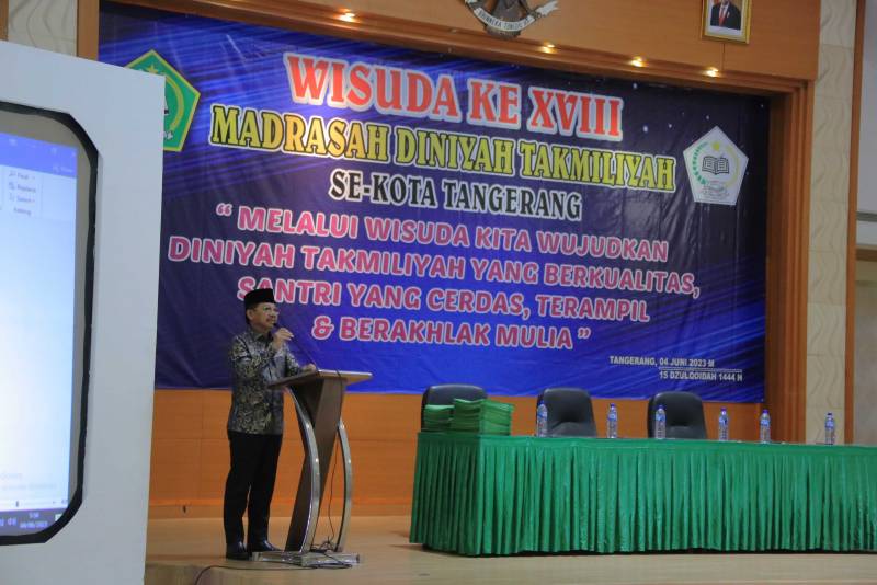 Wakil Wali Kota Tangerang, H. Sachrudin, menghadiri Wisuda ke-XVIII sekaligus Perpisahan Peserta Didik Madrasah Diniyah Takmiliyah (MDT) Tahun 2022-2023, yang diselenggarakan di Ruang Al Amanah, Pusat Pemerintahan Kota Tangerang, Minggu (04/6).