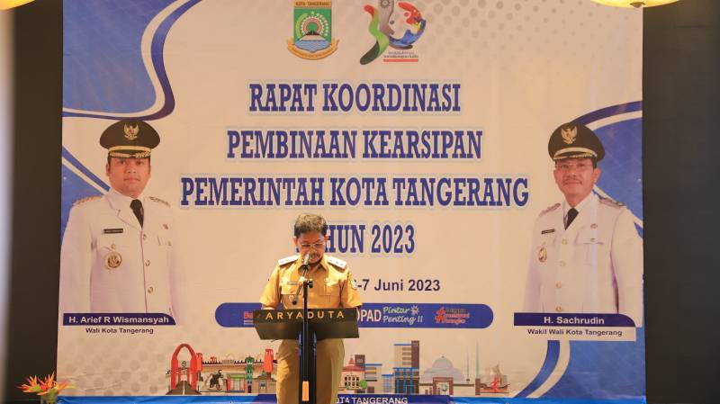 Pemerintah Kota (Pemkot) Tangerang melalui Dinas Perpustakaan dan Arsip Daerah (DPAD) menggelar Rapat Koordinasi Kearsipan, yang diikuti seluruh Organisasi Perangkat Daerah (OPD) pada 6-7 Juni, di Hotel Aryaduta, Kabupaten Tangerang, Selasa (6/6/23).