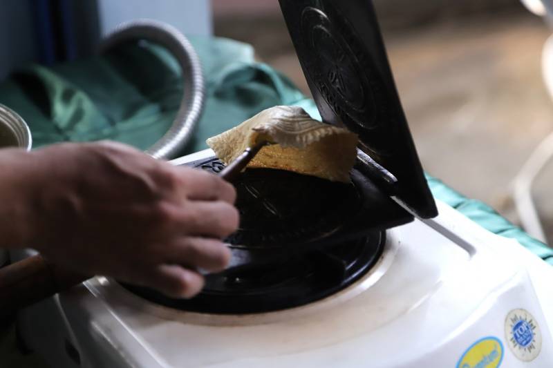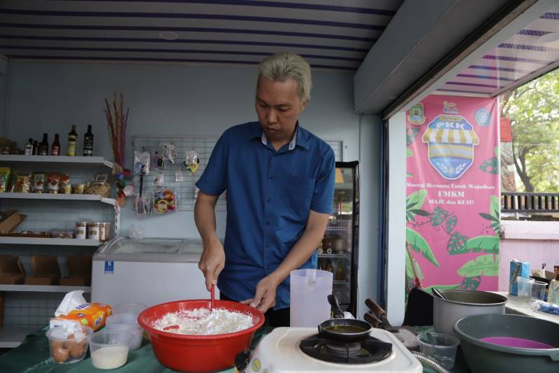 "Untuk membuat kue semprong, kami menggunakan bahan-bahan yang cukup simpel, seperti mentega, tepung terigu, vanilli, susu full cream, wijen, telur, santan kelapa, dan tepung sagu. Setelahnya, nanti diolah dengan cara dicampur, disaring, dipanaskan, dan dicetak. Jadi, semuanya dijamin berbahan alami, tanpa pengawet, dan tentu rasanya enak," jelasnya.