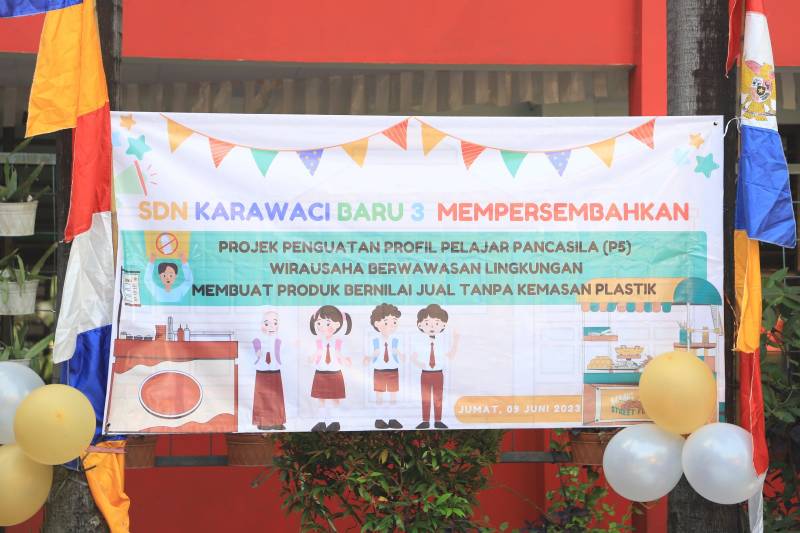 Mengimplementasikan P5 yakni Projek Penguatan Profil Pelajar Pancasila dalam kurikulum Merdeka. SD Negeri Karawaci Baru 3, Kelurahan Karawaci Baru, Kecamatan Karawaci menggelar Market Day, di halaman sekolah, Jumat (9/6/23).