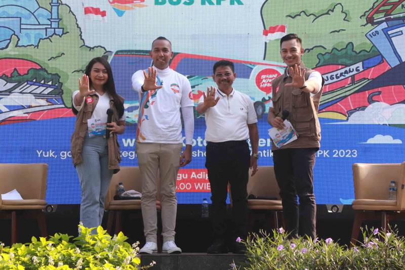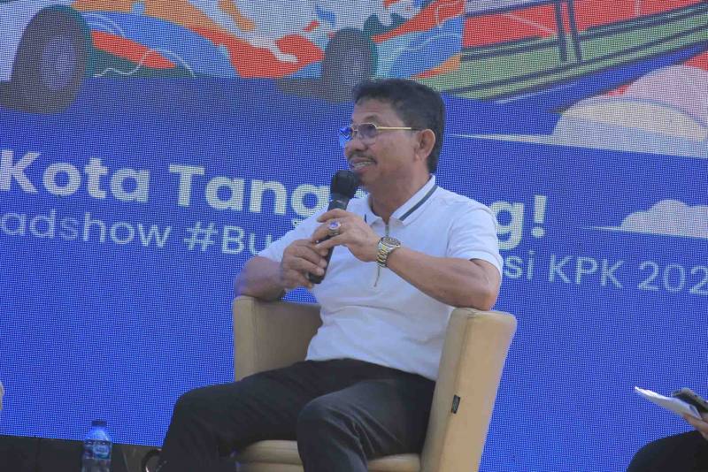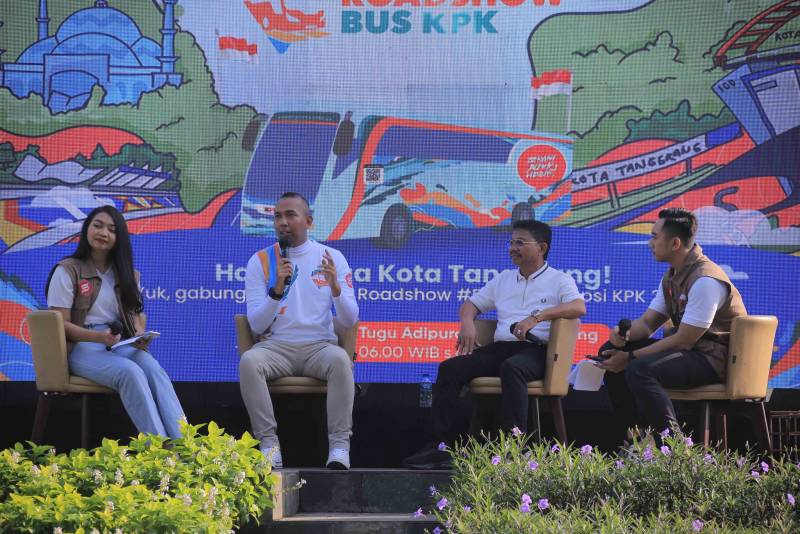 Wakil Wali Kota Tangerang, H. Sachrudin didaulat menjadi narasumber Dialog Publik Antikorupsi yang merupakan bagian dari kegiatan Roadshow Bus Komisi Pemberantasan Korupsi (KPK) Jelajah Negeri Bangun Antikorupsi yang diselenggarakan di Tugu Adipura Kota Tangerang, Minggu pagi, (11/06/2023), saat Car Free Day.