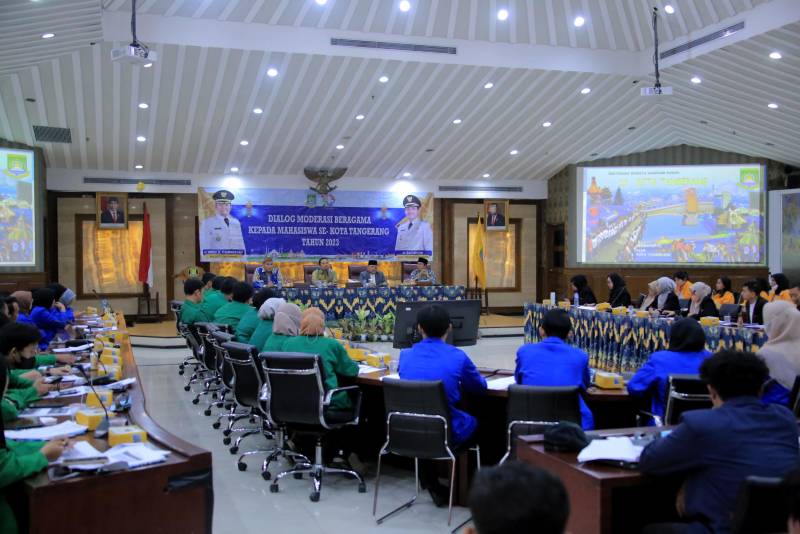 Pemerintah Kota (Pemkot) Tangerang melalui Bagian Kesejahteraan Rakyat (Kesra) Sekretariat Daerah, menyelenggarakan kegiatan Dialog Moderasi Beragama Kepada Mahasiswa se-Kota Tangerang Tahun 2023 bertempat di Ruang Rapat Aklhakul Karimah Gedung Pusat Pemerintahan (Puspem) Kota Tangerang, Kamis, (15/06).
